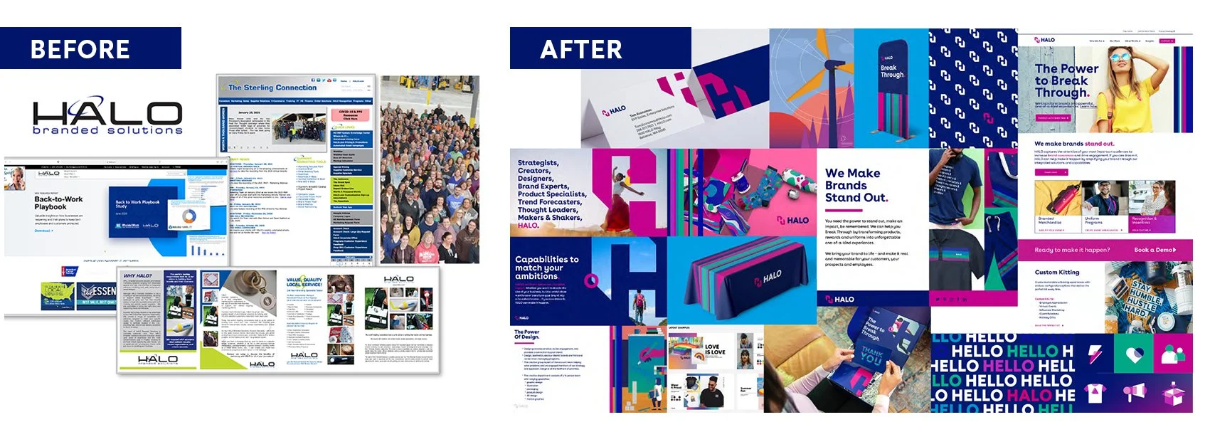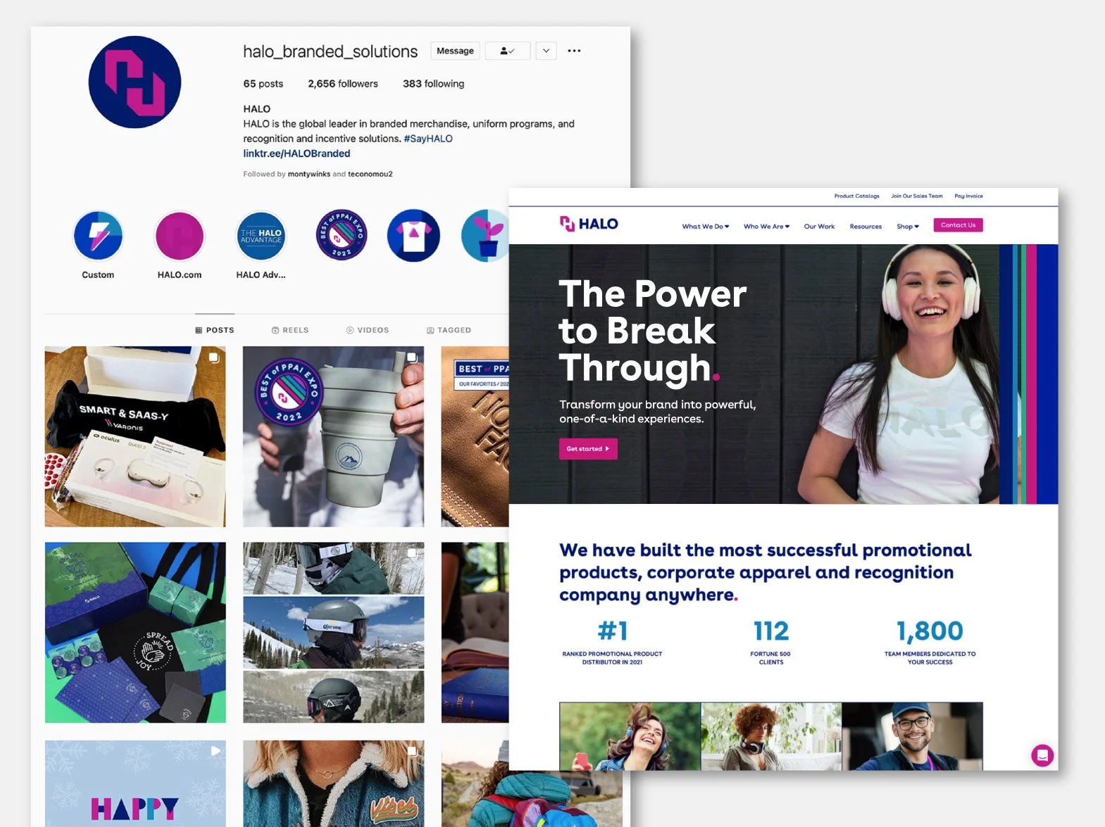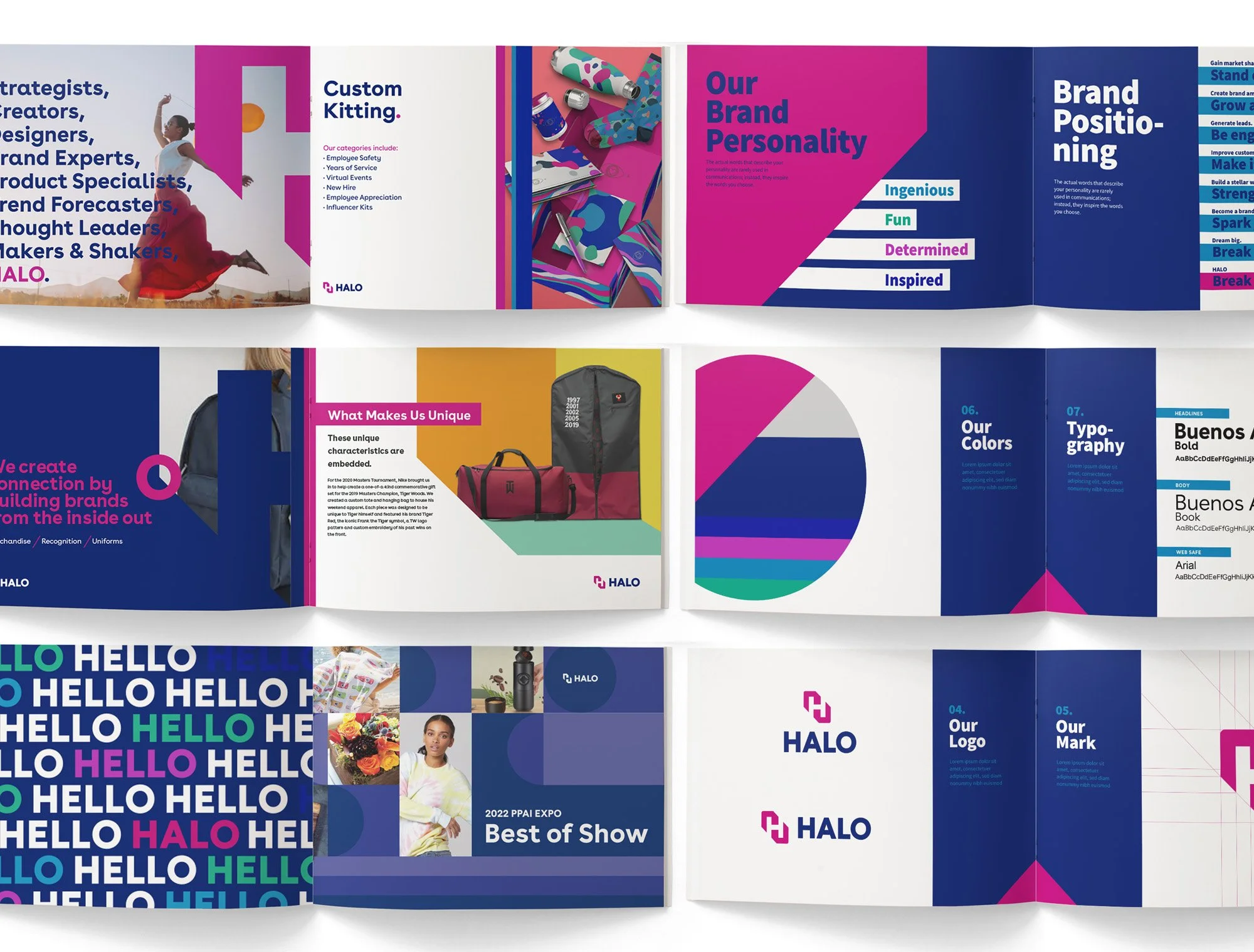 Objective: HALO is the global leader in branded merchandise industry, yet the brand identity and messaging strategy did not accurately reflect this. The logo was outdated and we needed to enhance and elevate the messages we communicate to our clients and prospects about HALO.